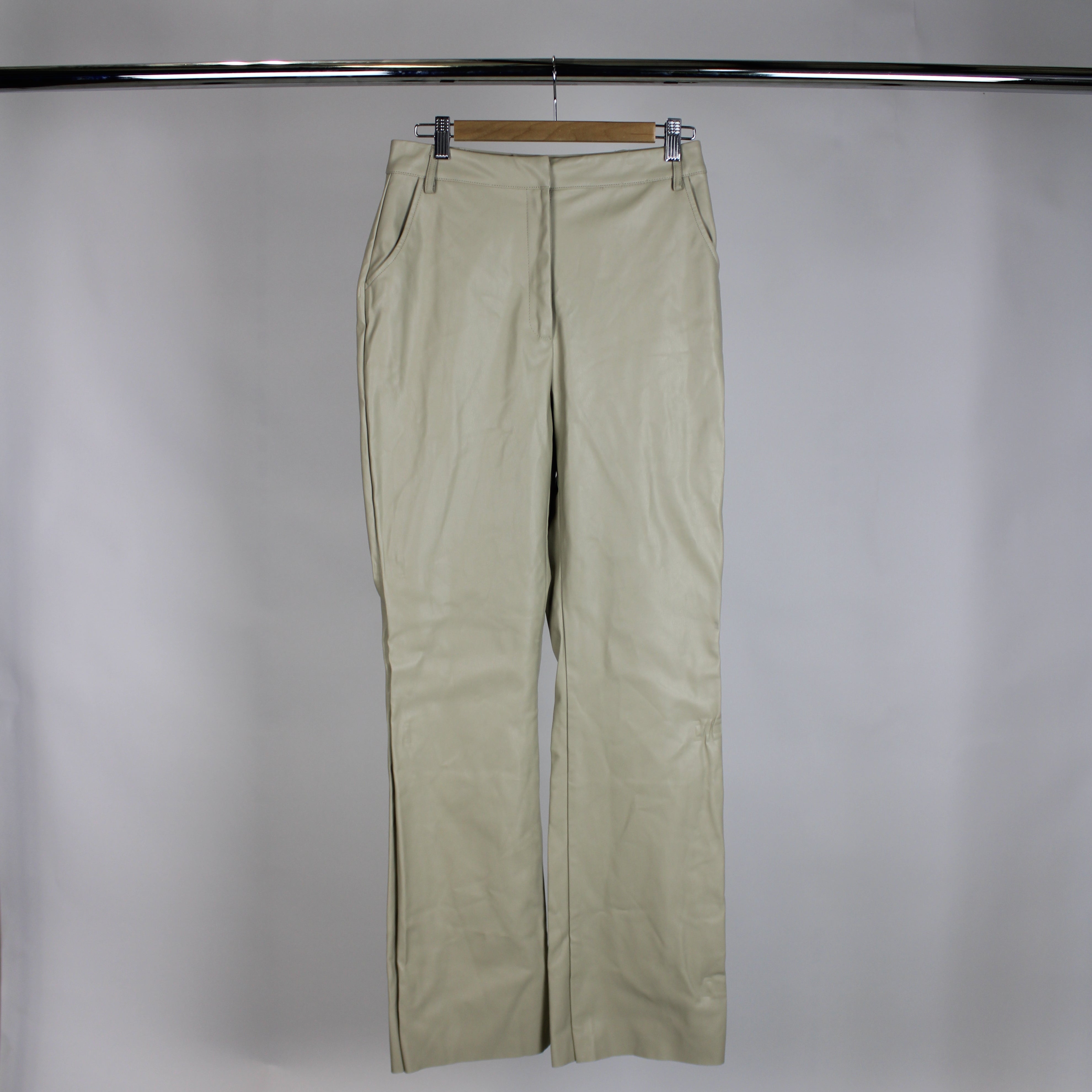 Meshki Beige Straight Leg Faux Leather Pants