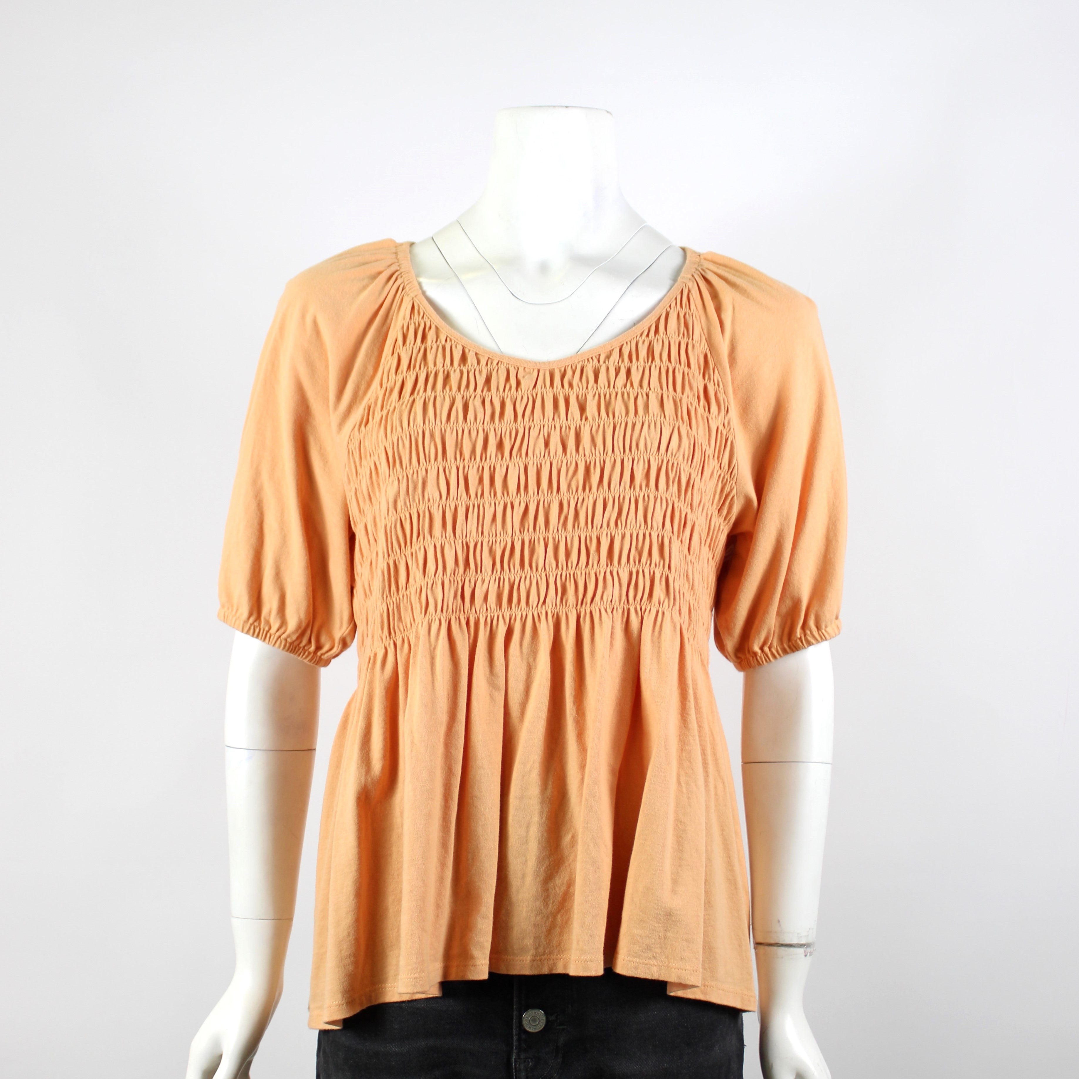 Seed Orange Shirred Peplum Blouse