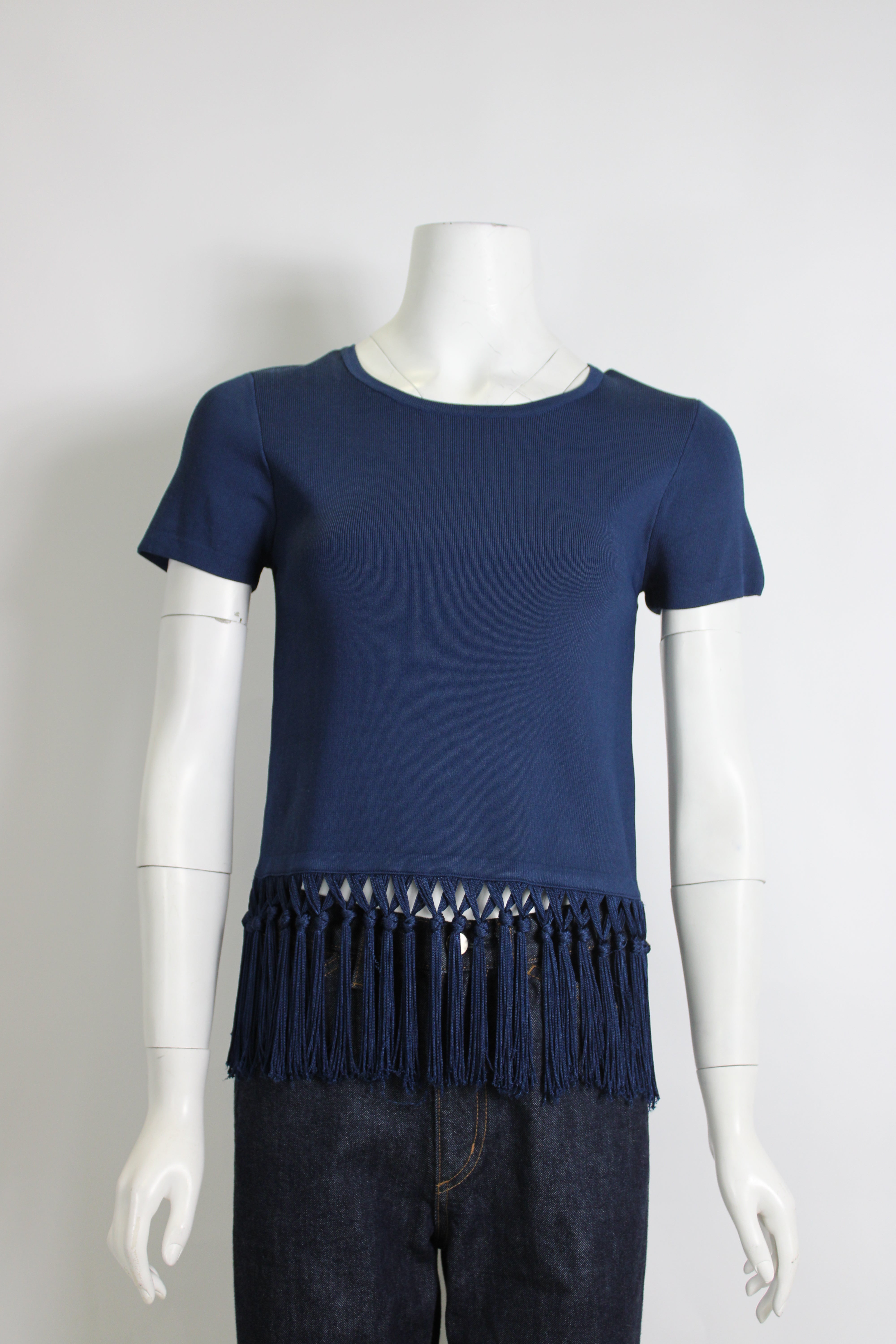 Seed Navy Tassel Hem Top