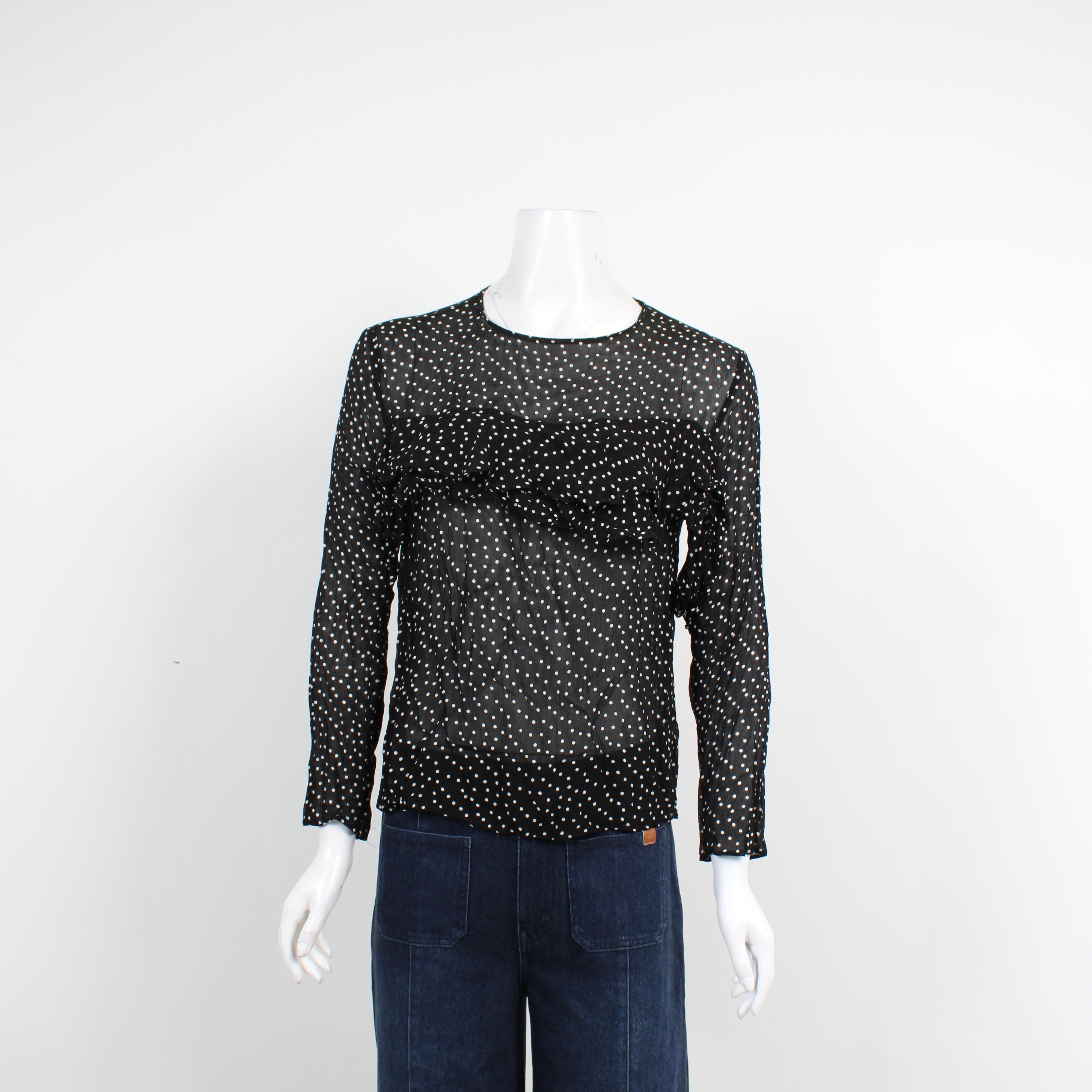Zara Black Polka Dot Ruffle Blouse