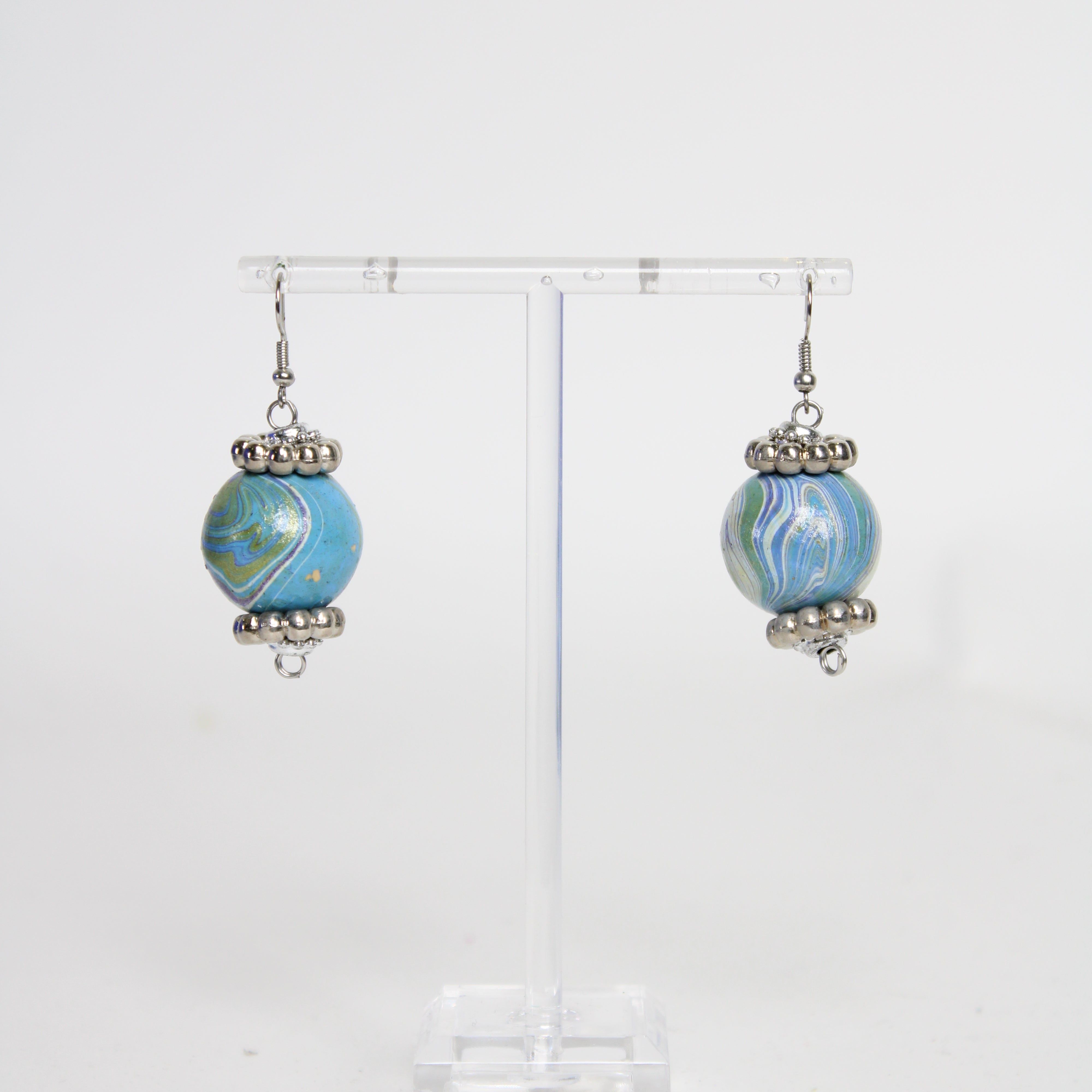 Blue Ball Drop Earrings