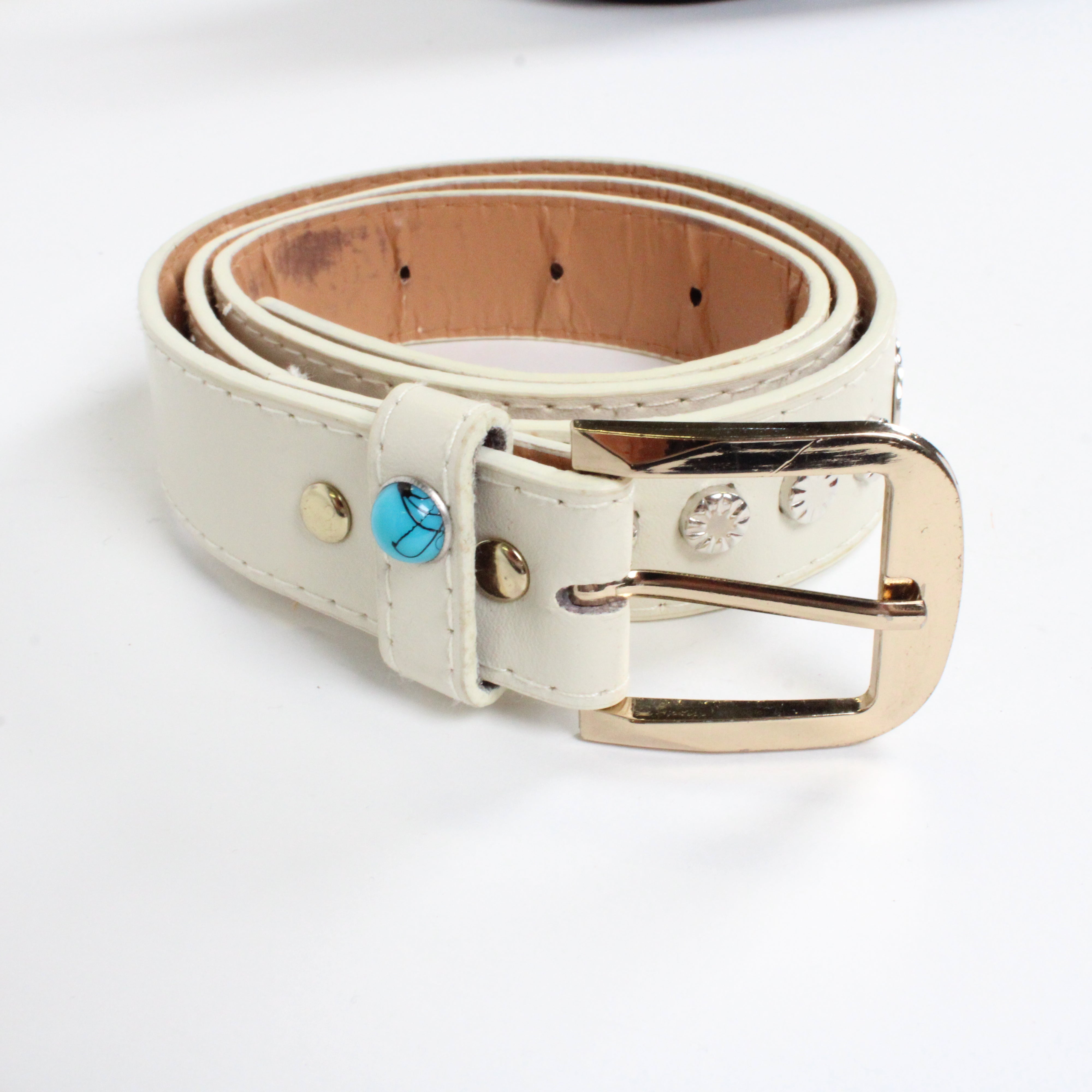 Cream Belt with Silver and Blue Stone Details