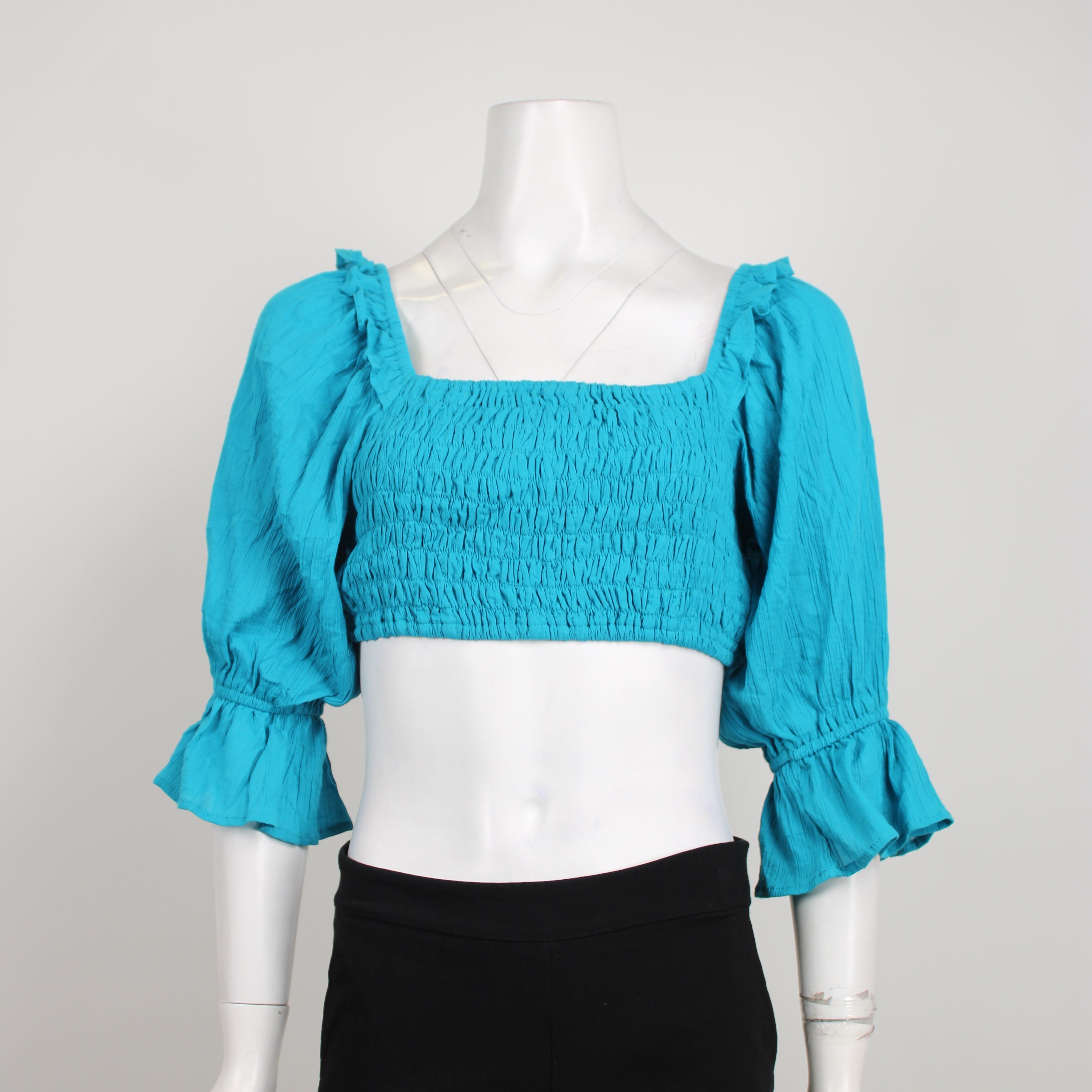 Aere Blue Ruched Crop Blouse