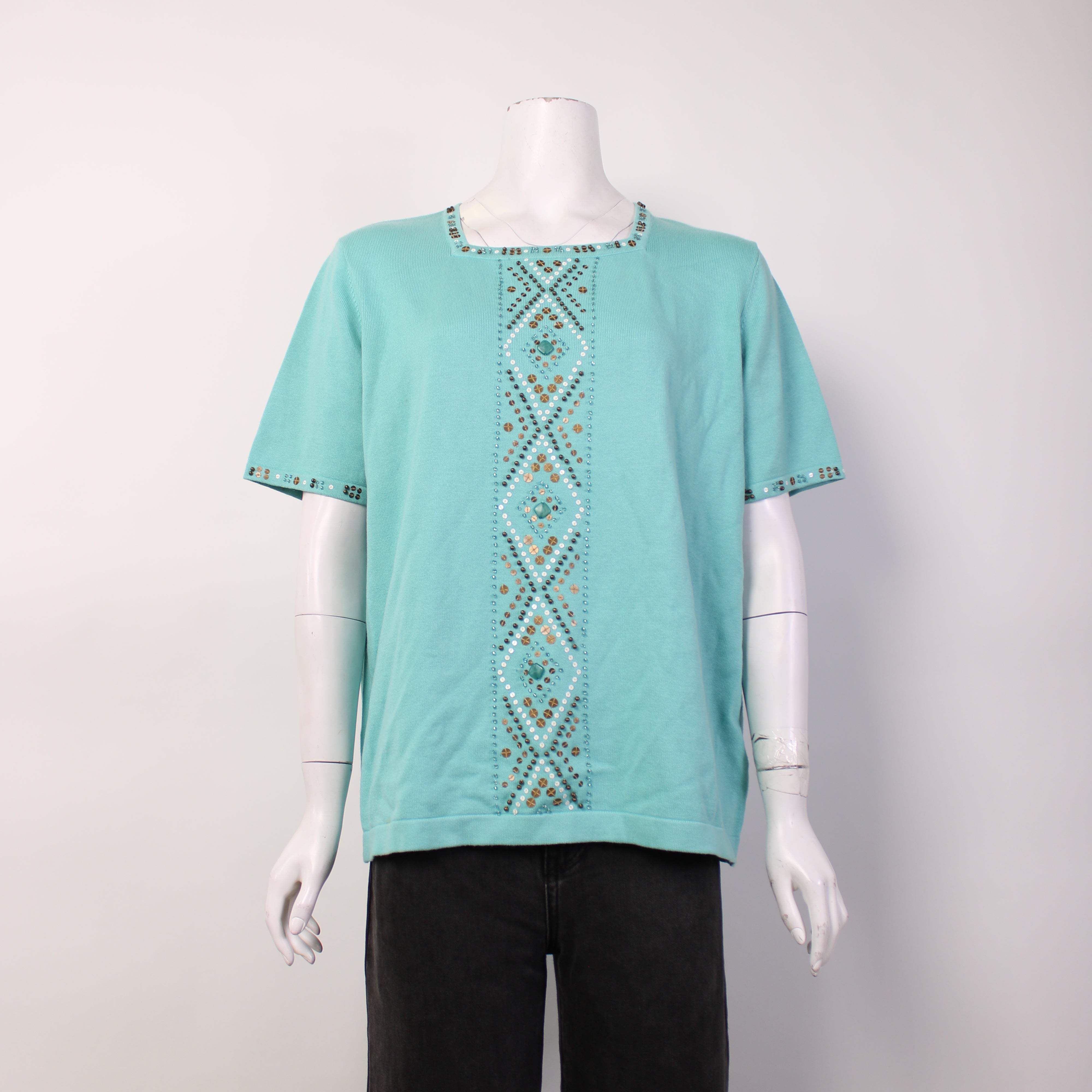 Alfred Dunner Blue Sequined Knit Blouse BNWT