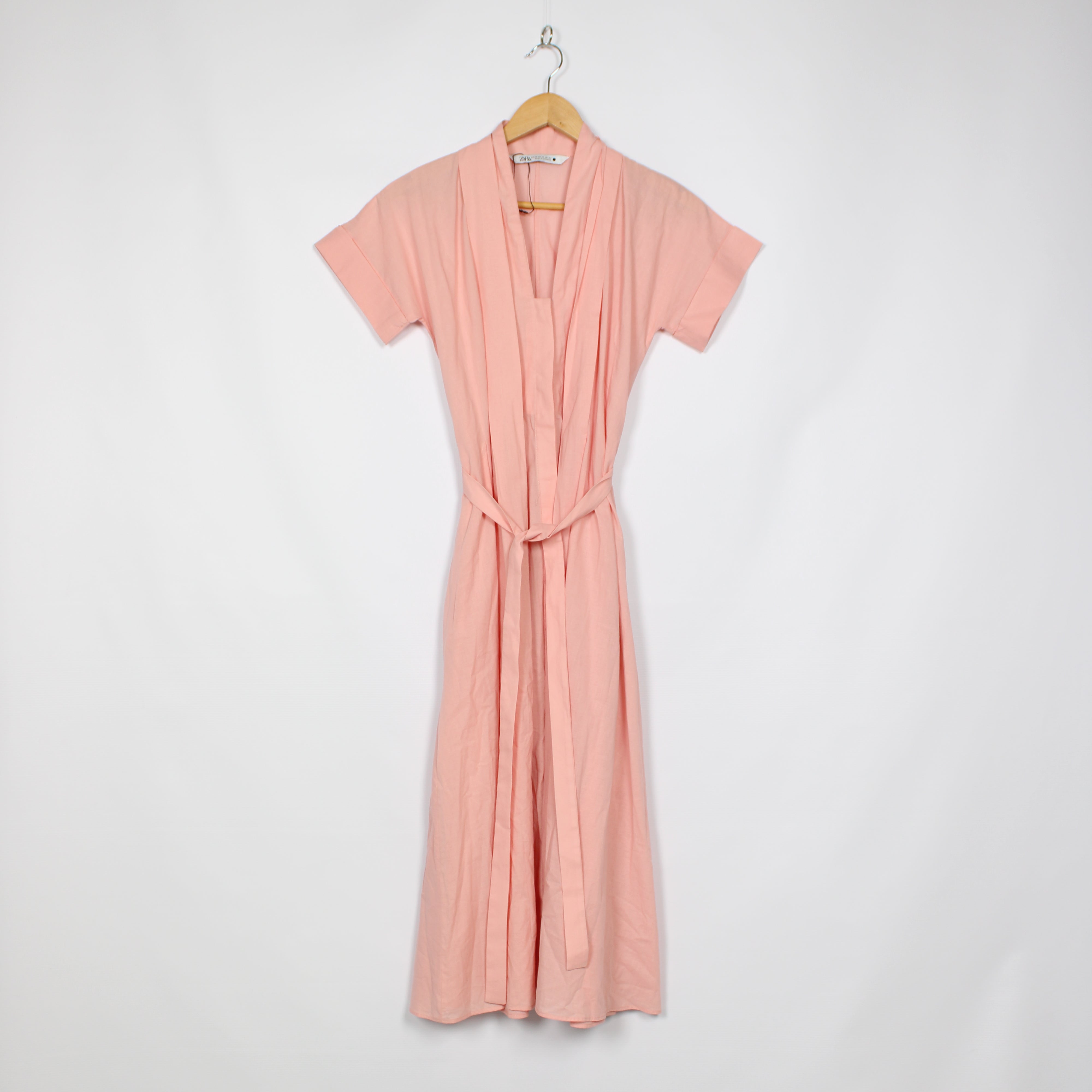 Zara Pink Short Sleeve Midi Dress