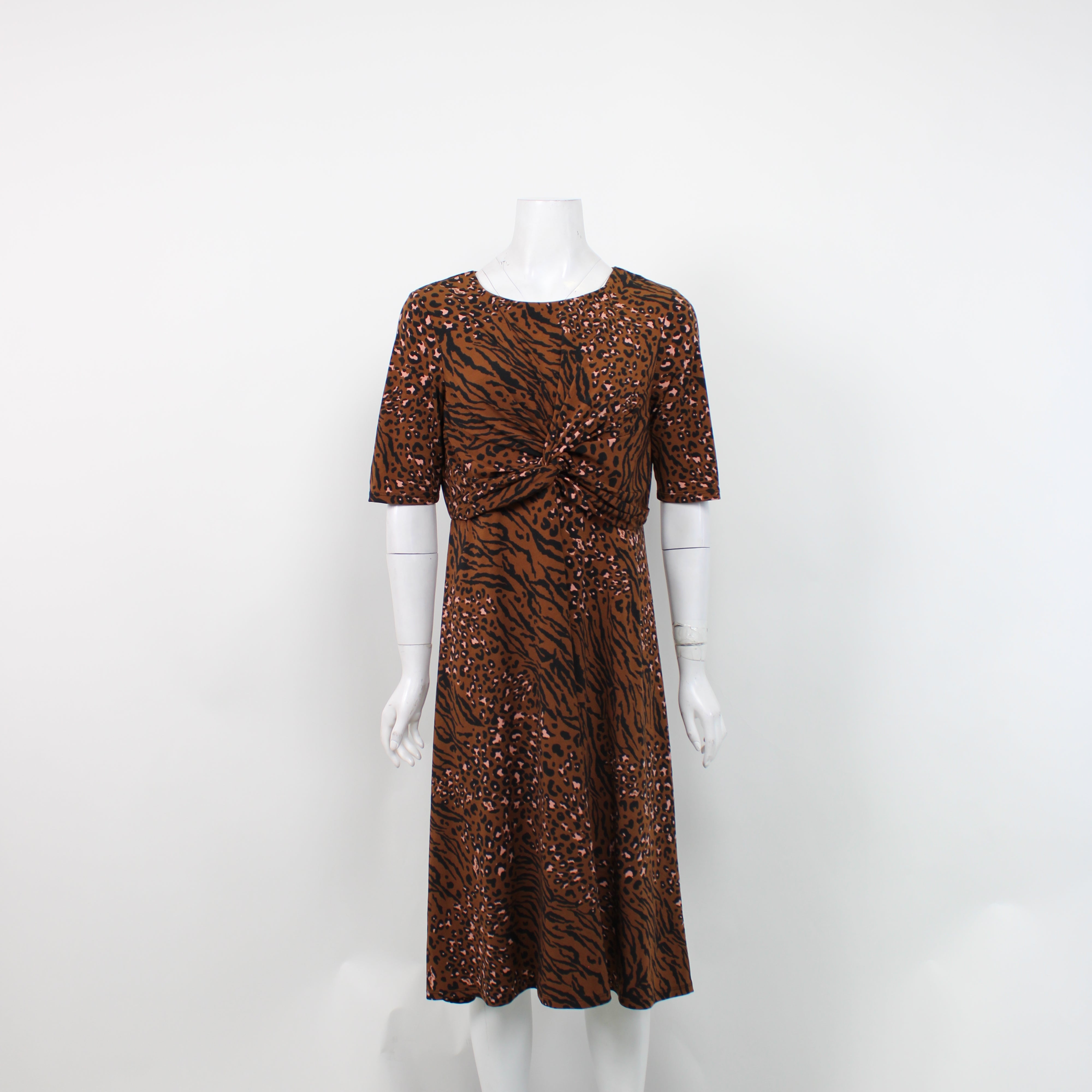 Liz Jordan Brown Animal Print Midi Dress
