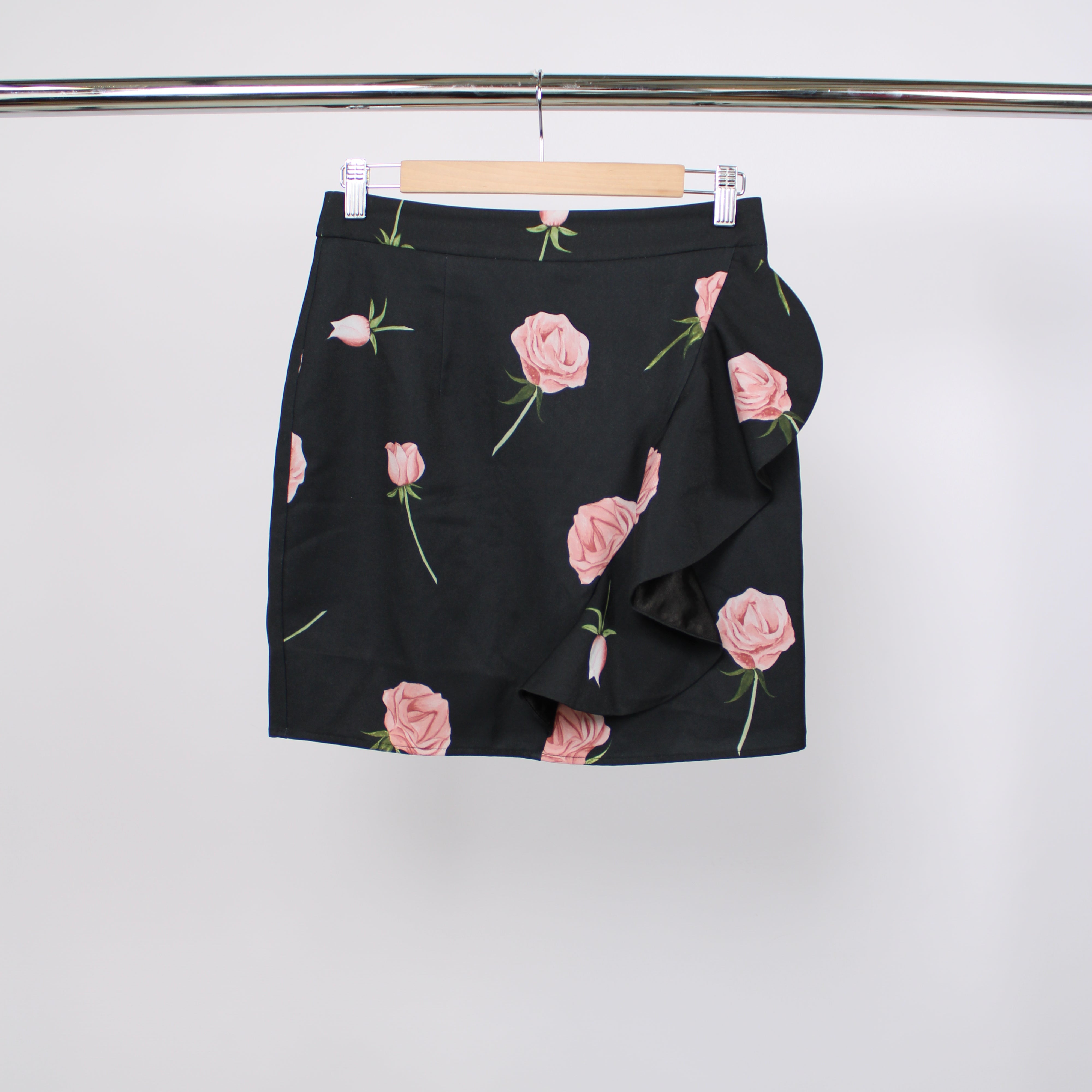 Sheike Black Rose Print Mini Skirt