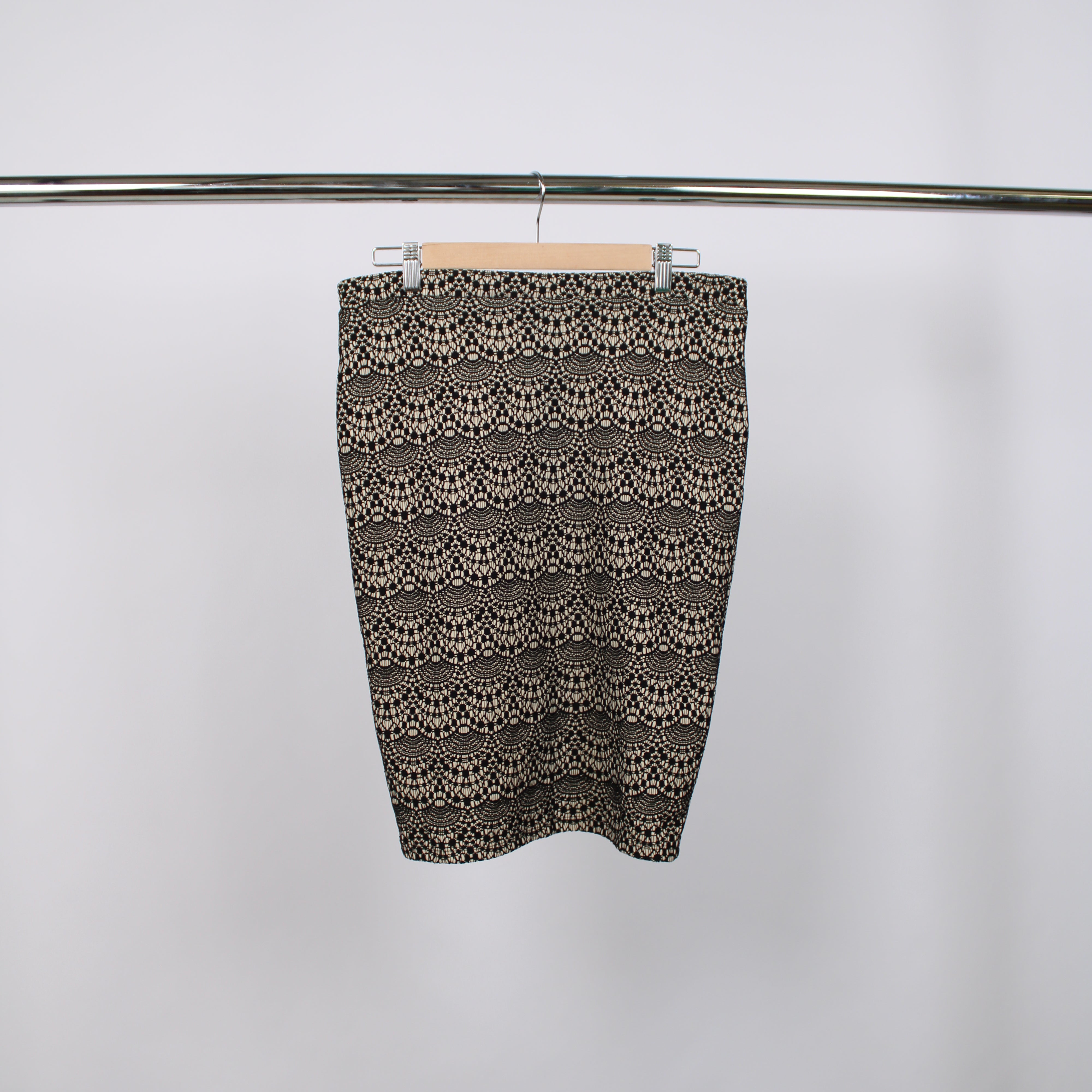 Warehouse Black and Cream Lace Pencil Skirt