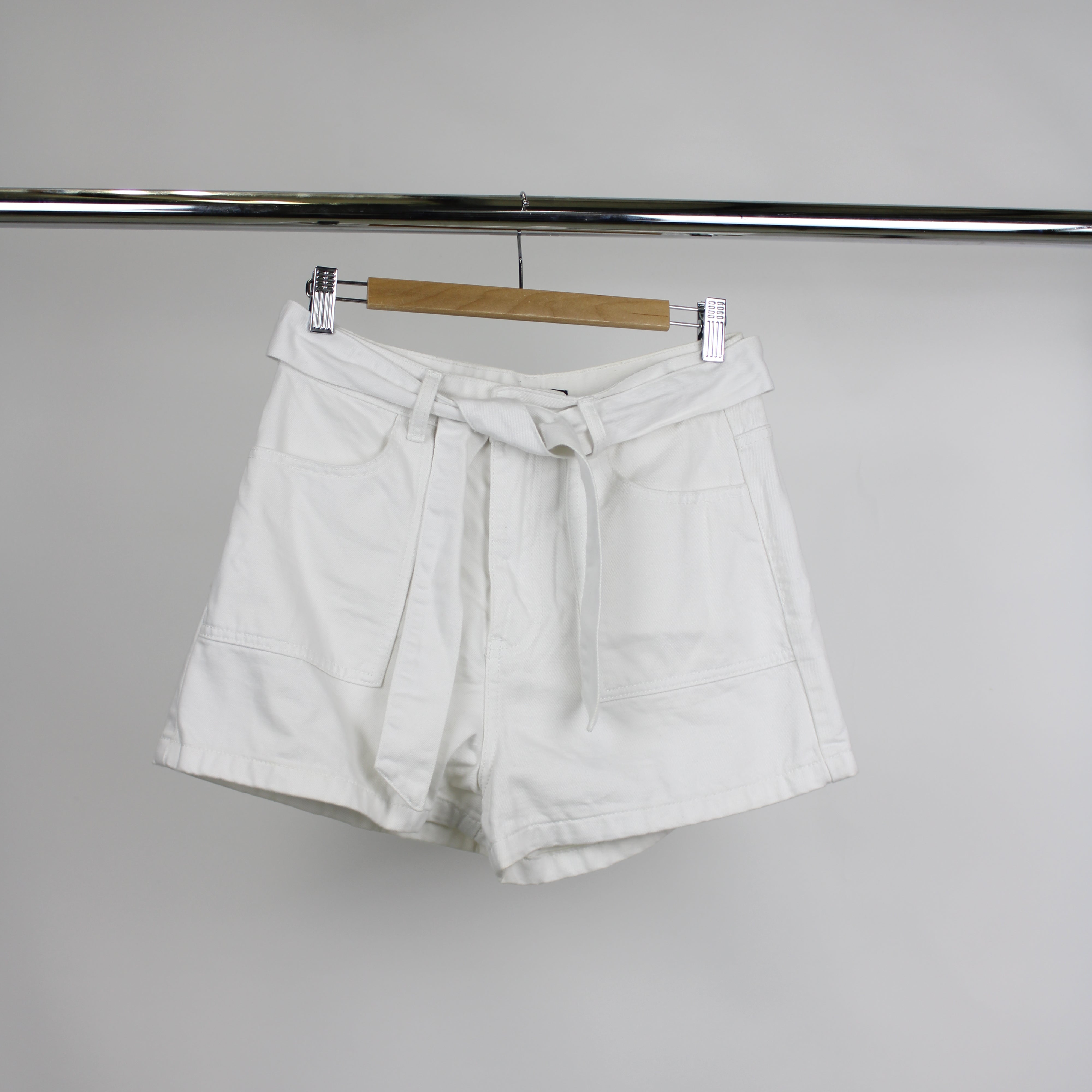Glassons White Denim Belted Mini Shorts