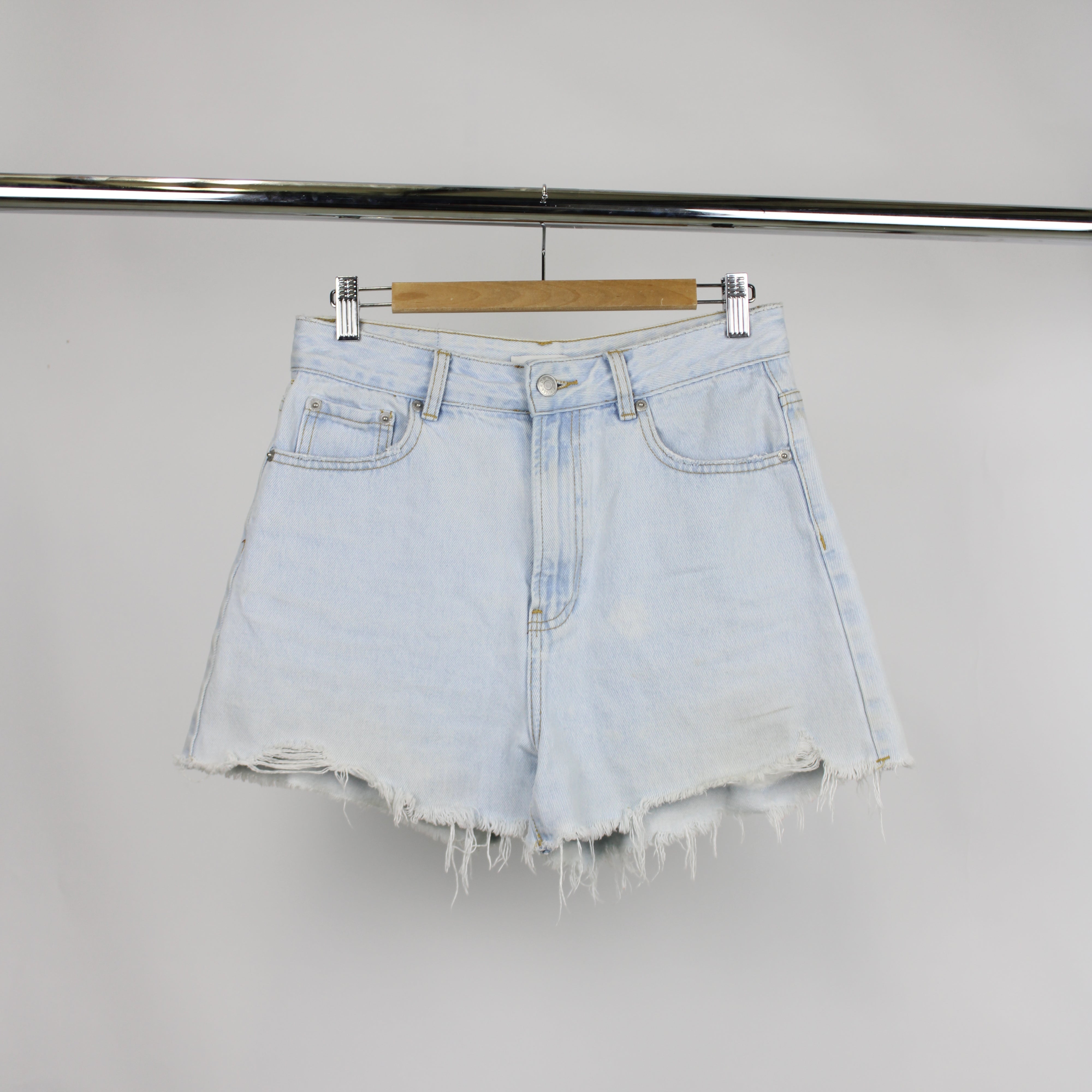 Glassons Blue Light Wash Denim Raw Hem Mini Shorts