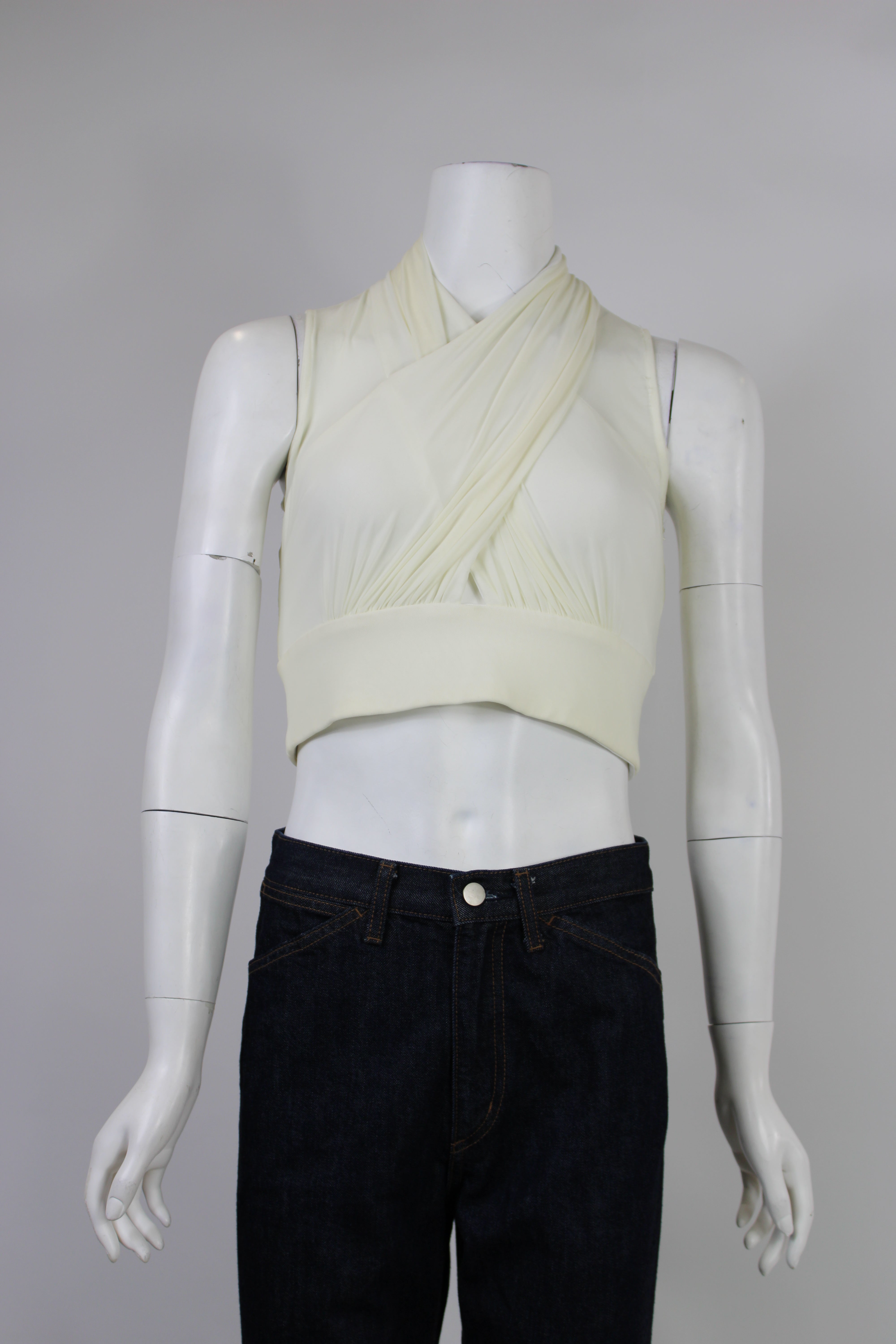 Bardot Mesh Wrap Crop Blouse