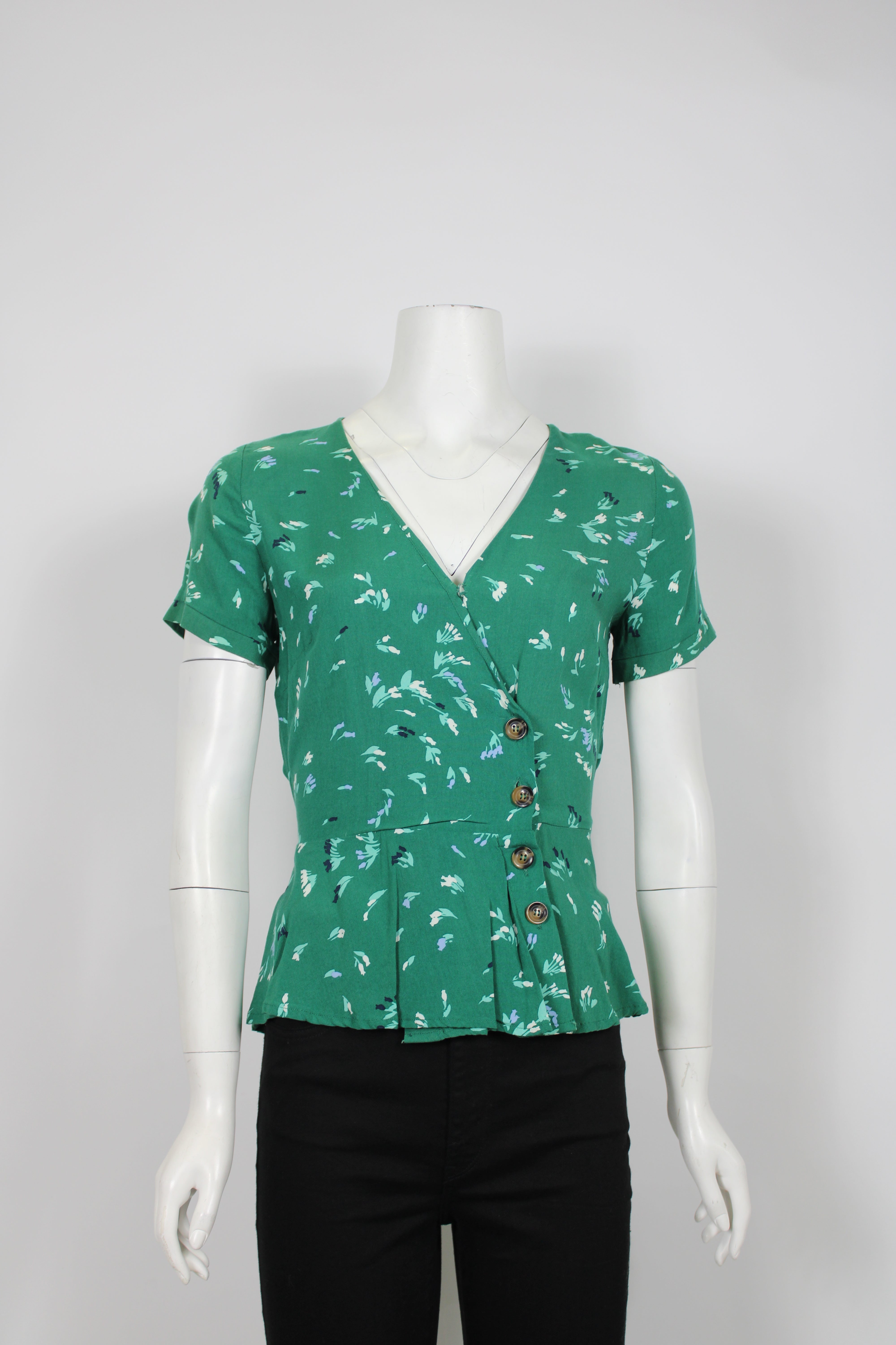 Grace & Mila Green Floral Wrap Top