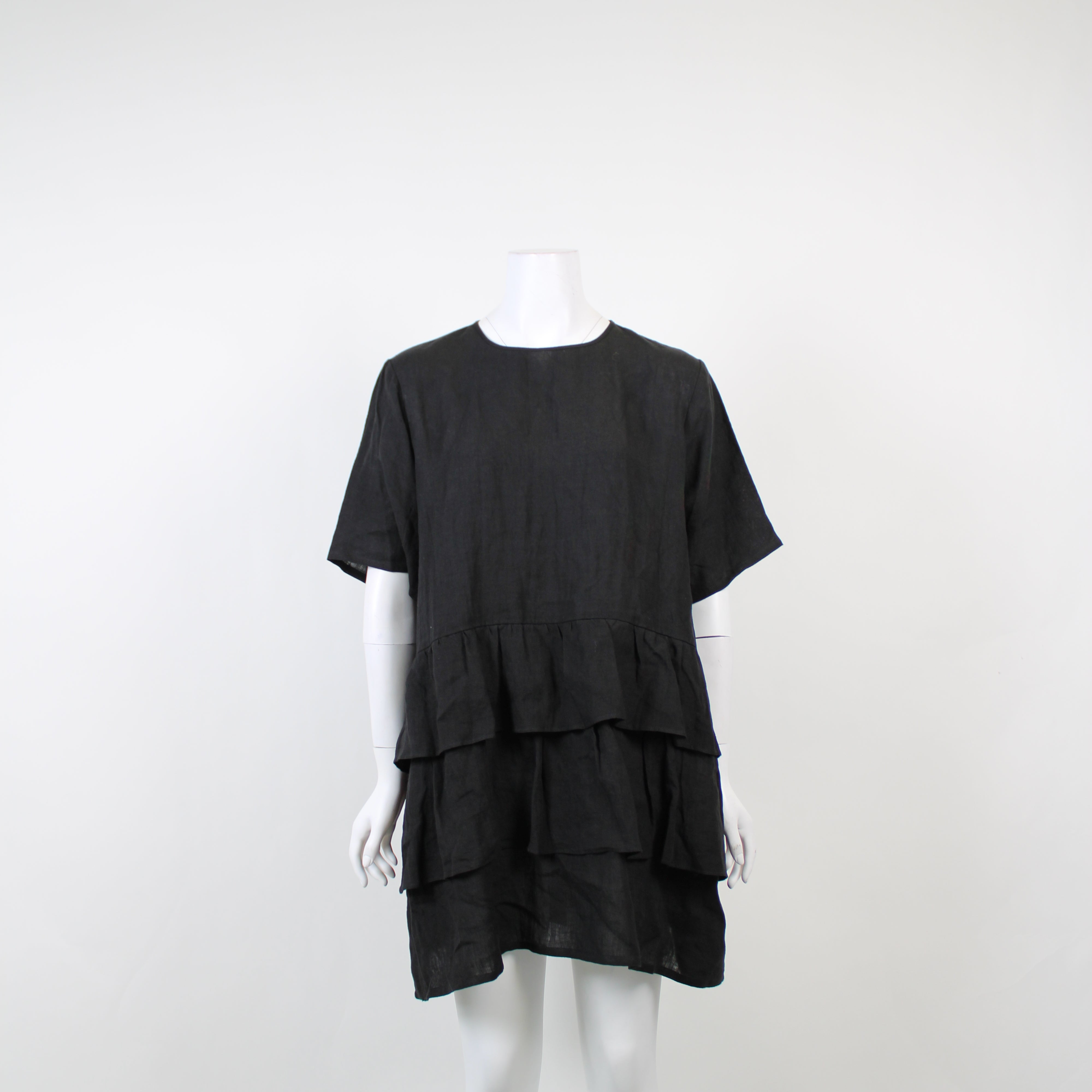 Aere Black Linen Smock Dress