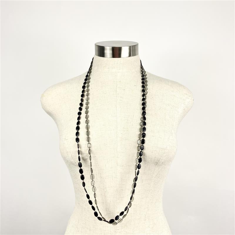 Black And Grey Transparent Flat Bead Necklace Set