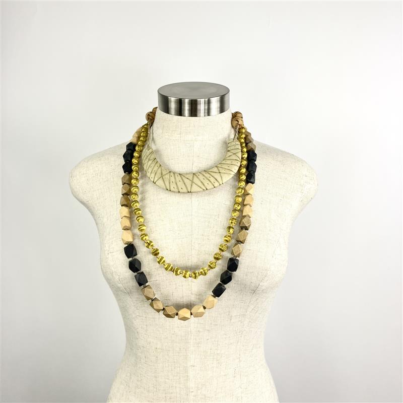 Beige And Black Beaded Necklace Bundle