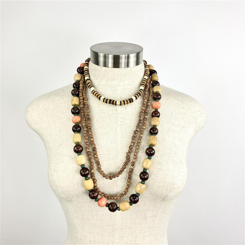 Brown Beaded Layered Necklace Bundle
