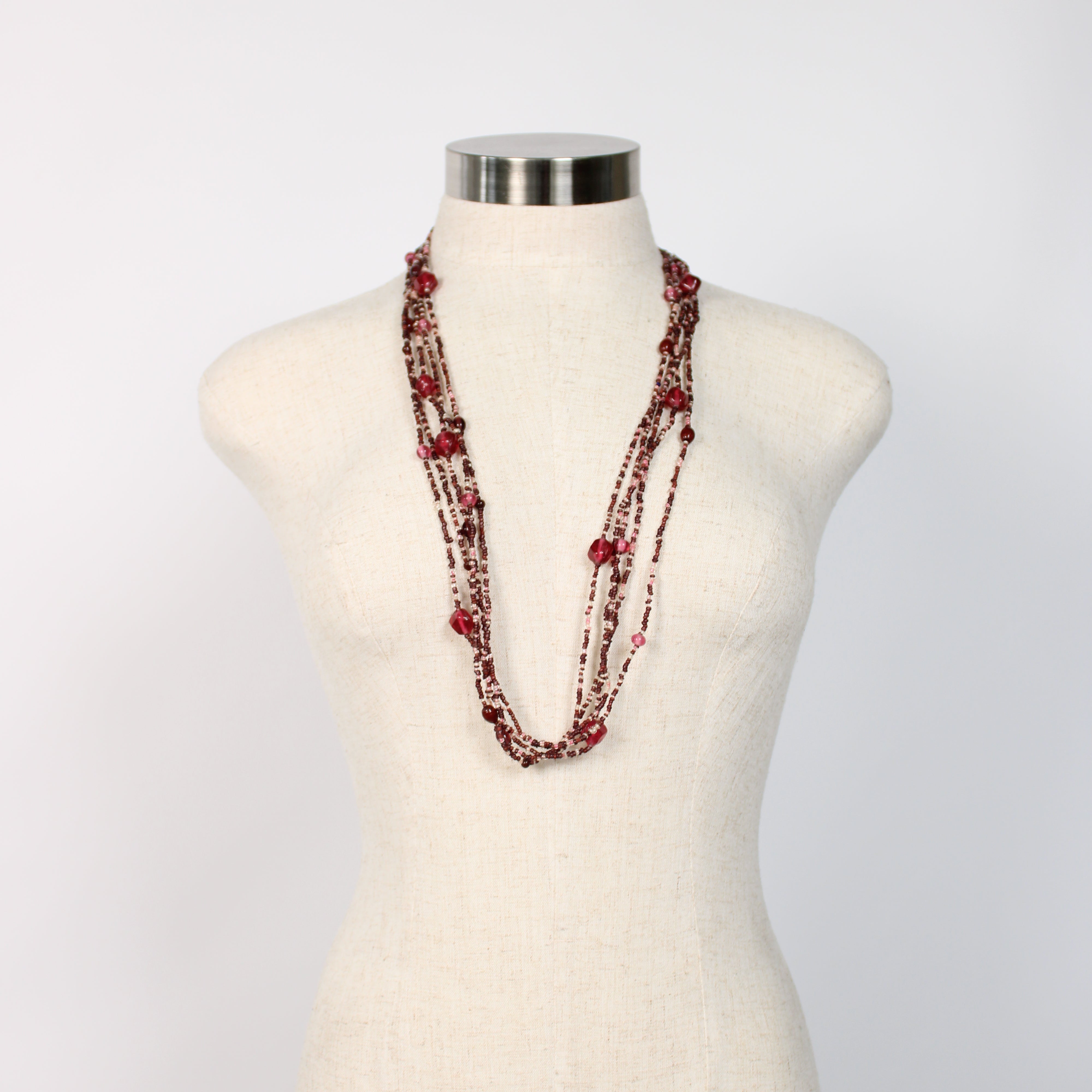 Red Multilayered Beaded Necklace