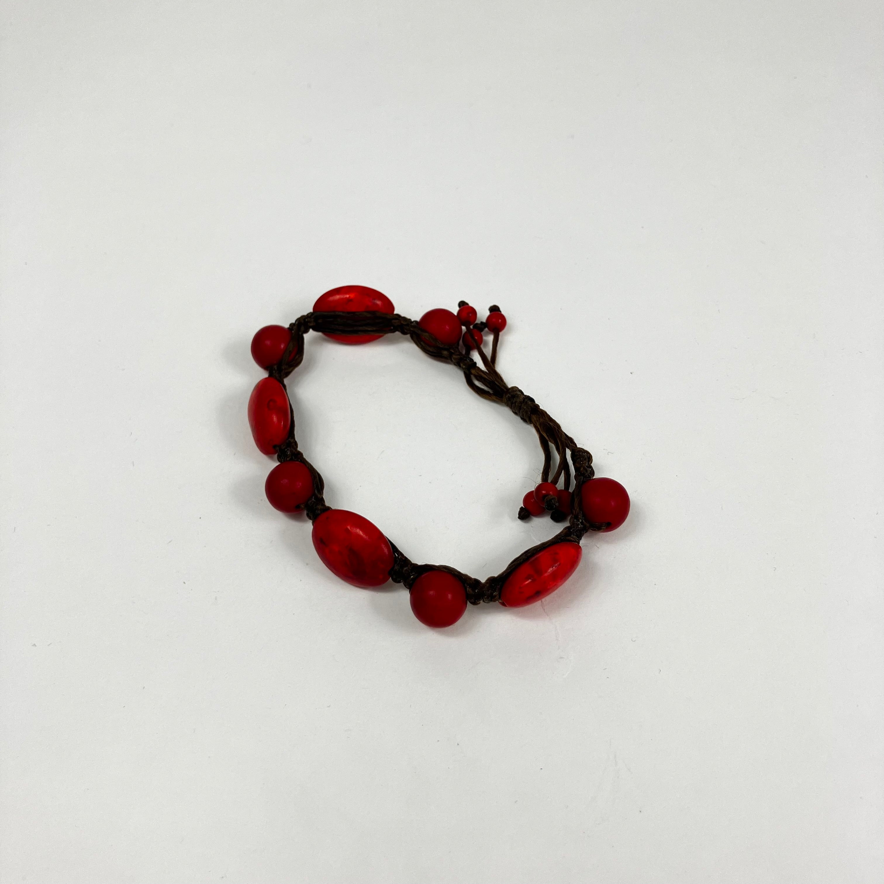 Red Stone Bracelet With Brown Rope
