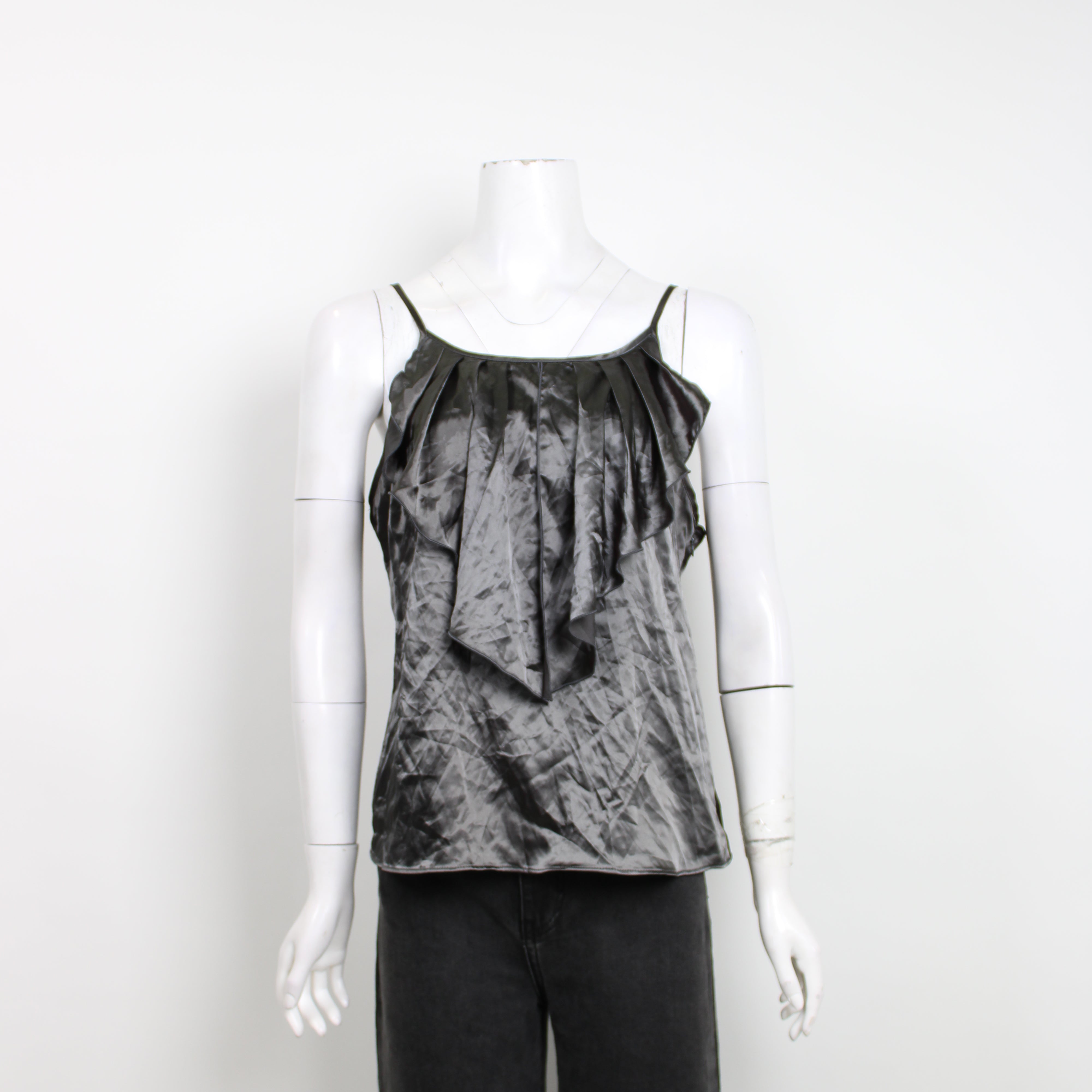 Cue Black Satin Ruffle Blouse