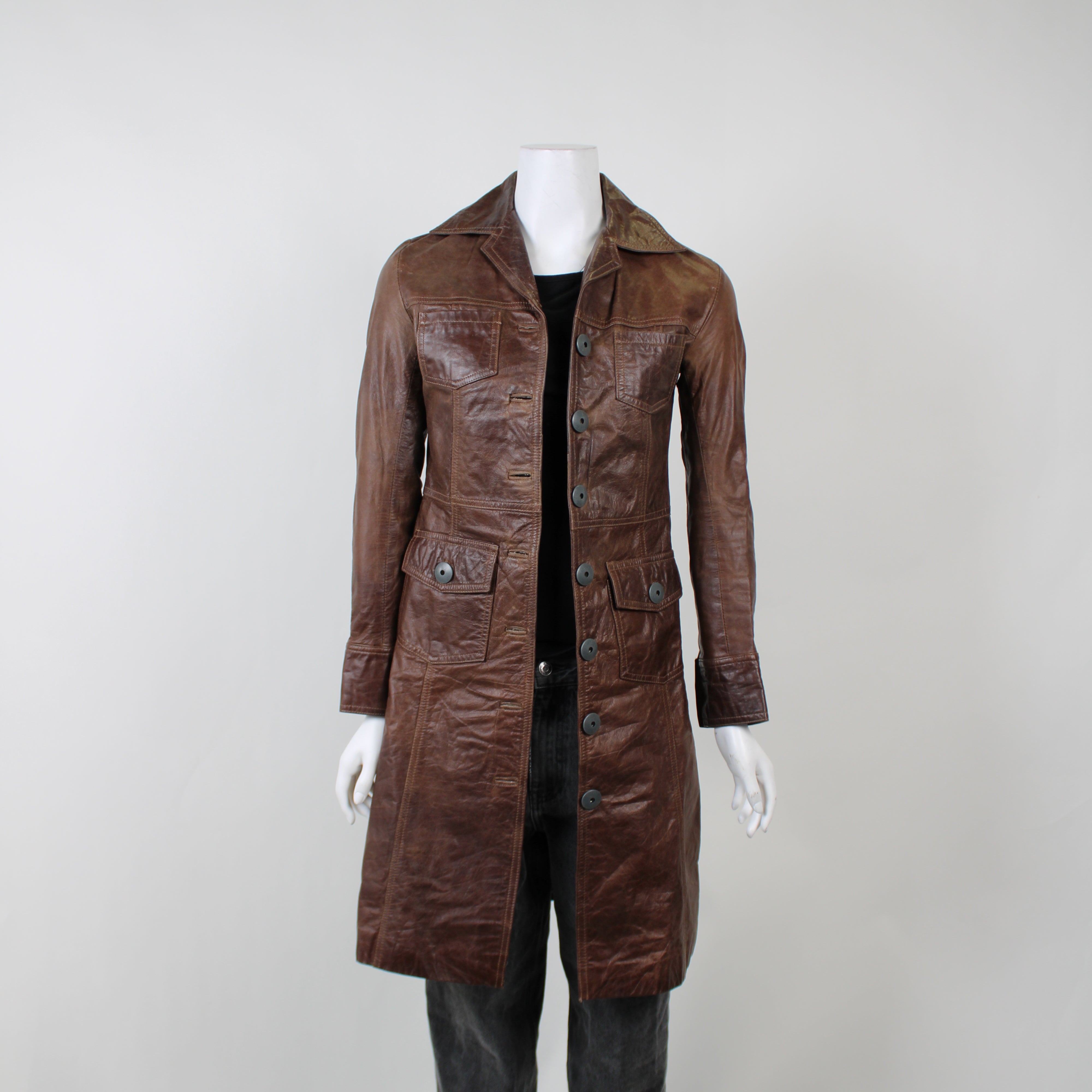 Brown Leather Vintage Trenchcoat