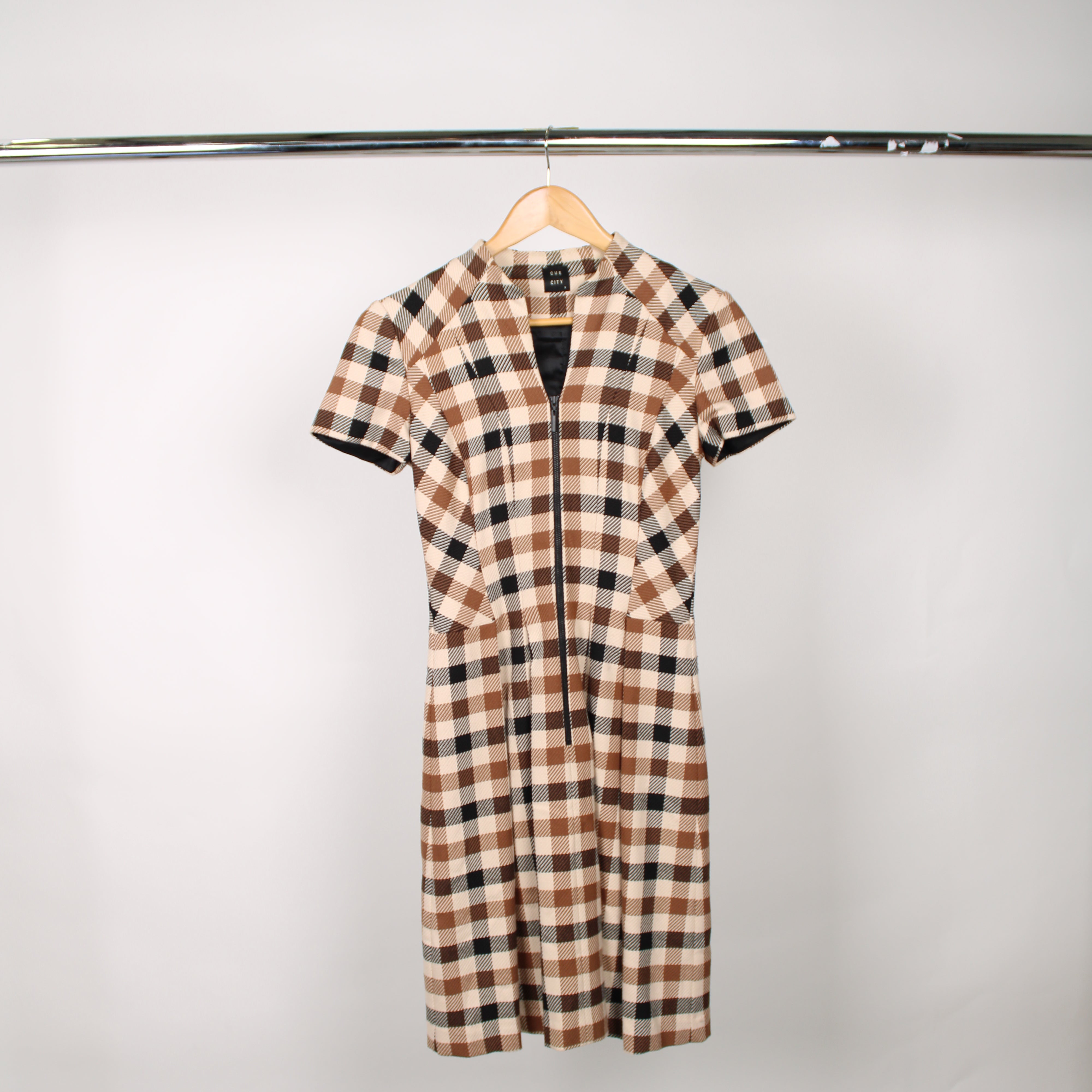 Cue Brown Checkered Mini Dress