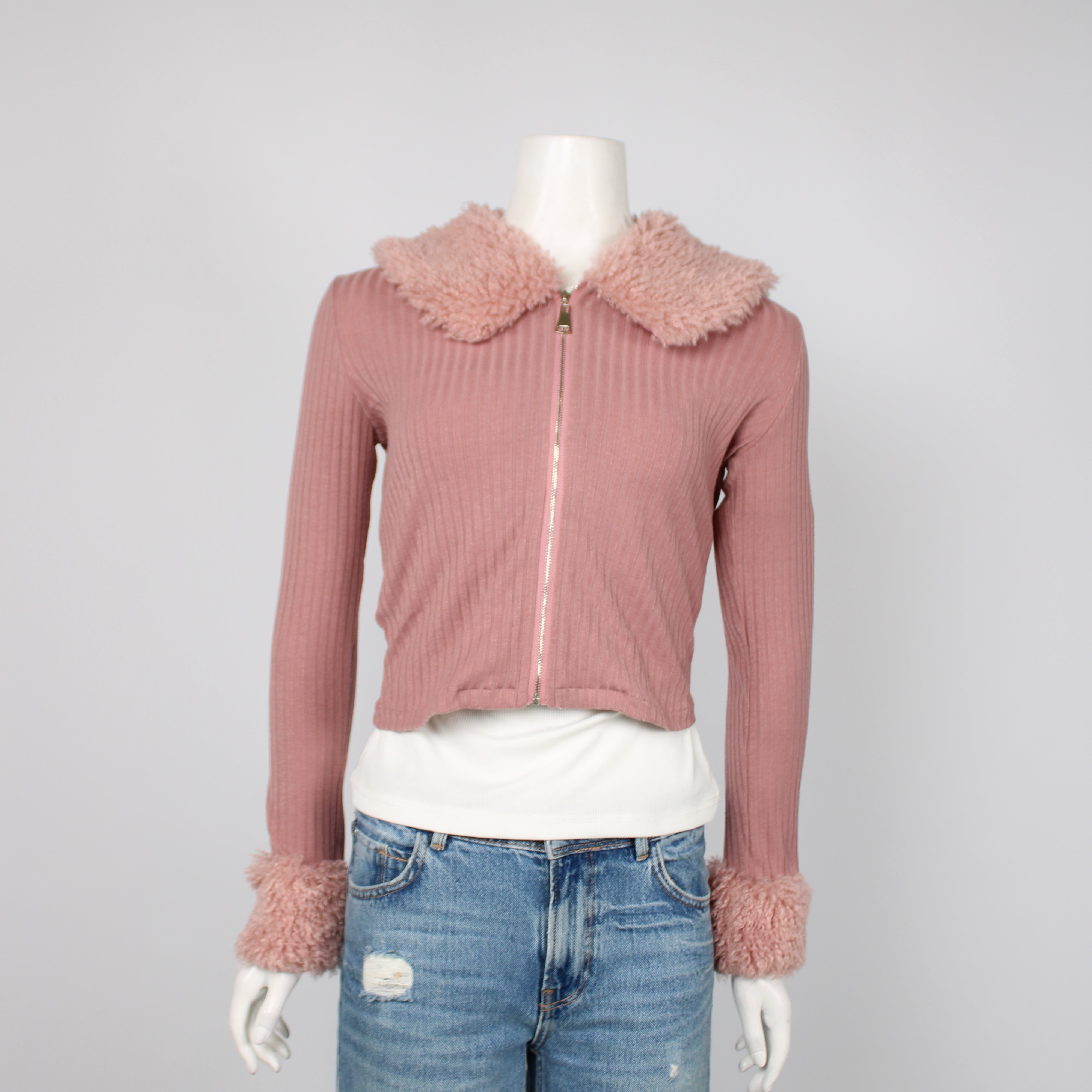 ValleyGirl Pink Faux Fur Trim Cardigan
