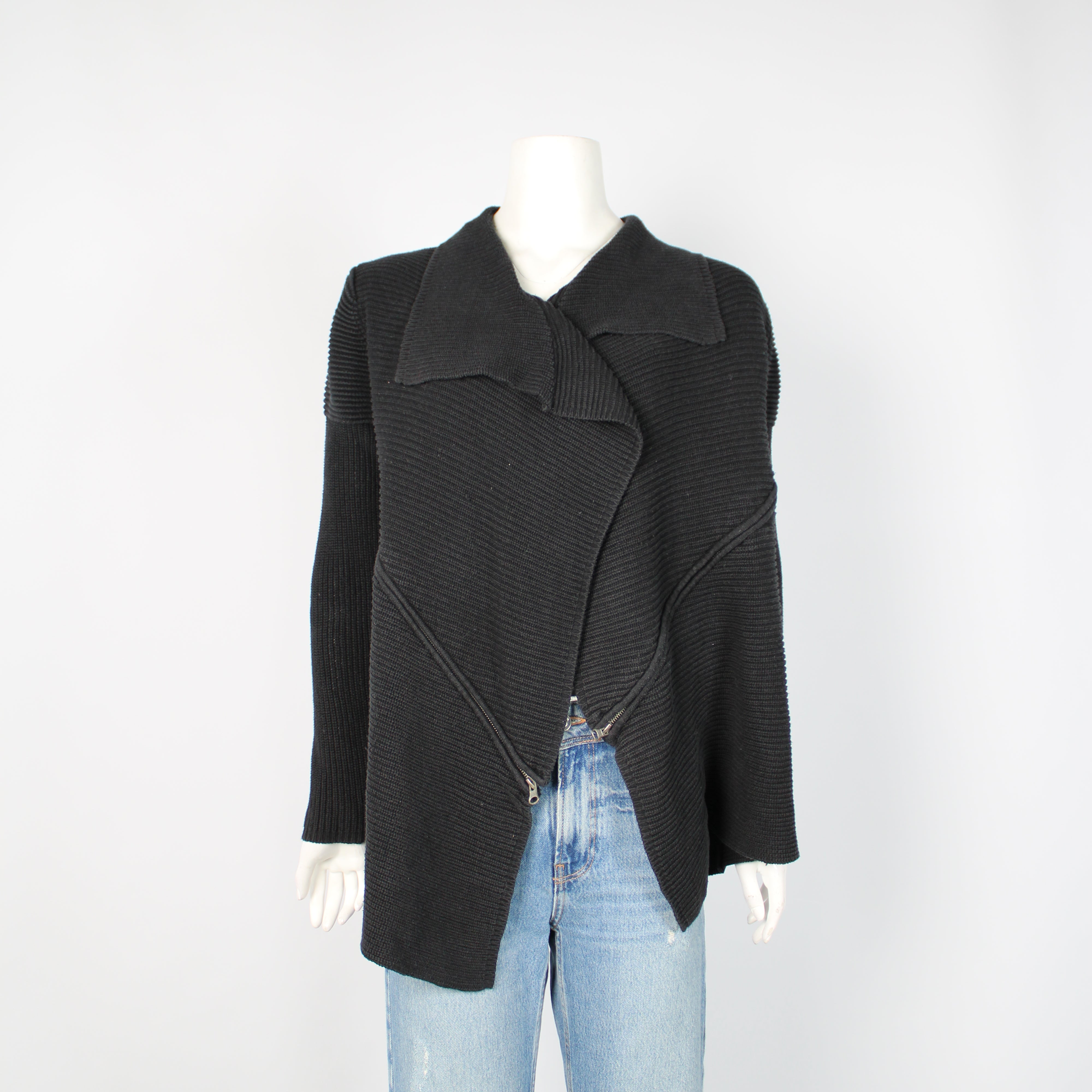 Katies Black Asymmetrical Knitted Cardigan