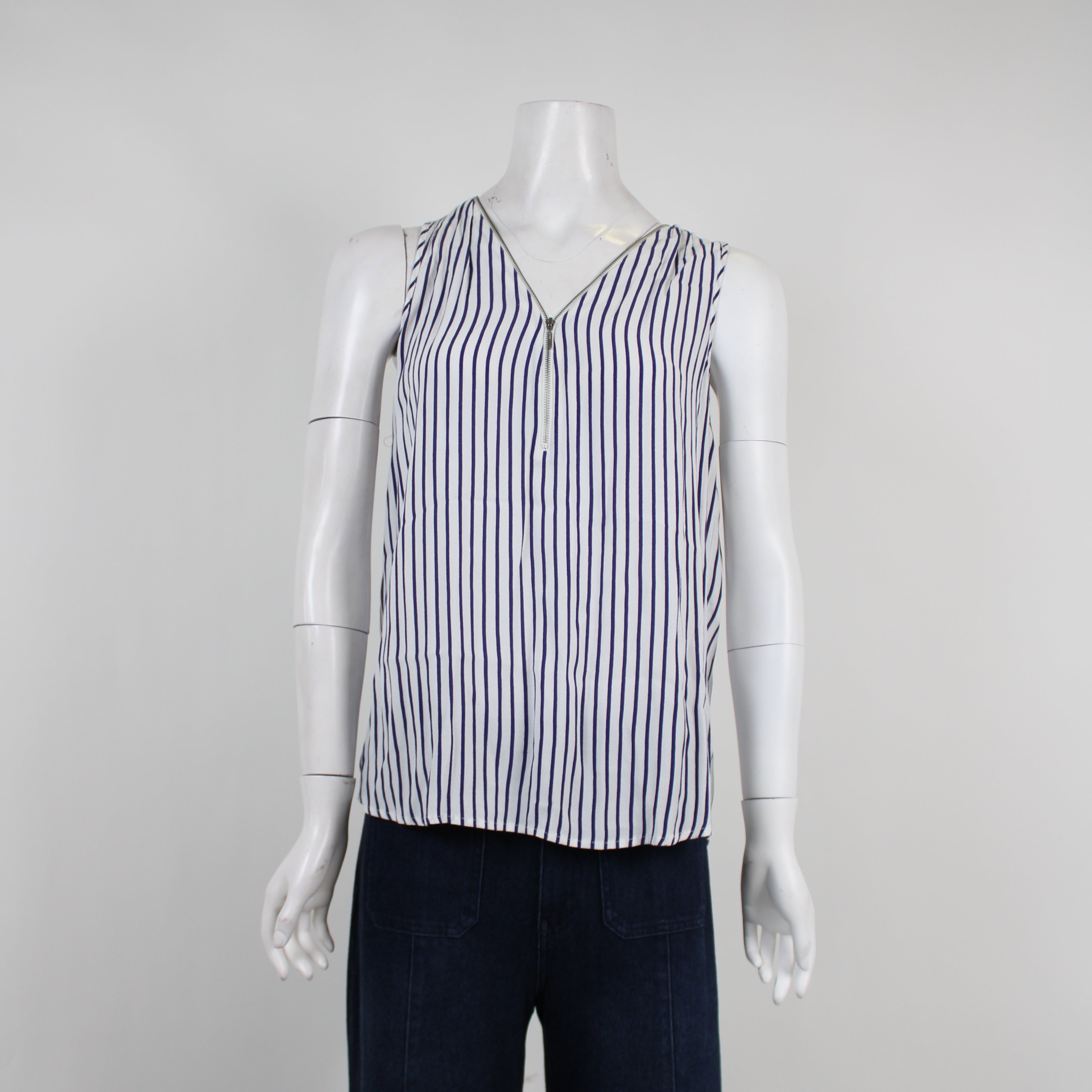 Sportsgirl Navy and White Vertical Striped Tank Top
