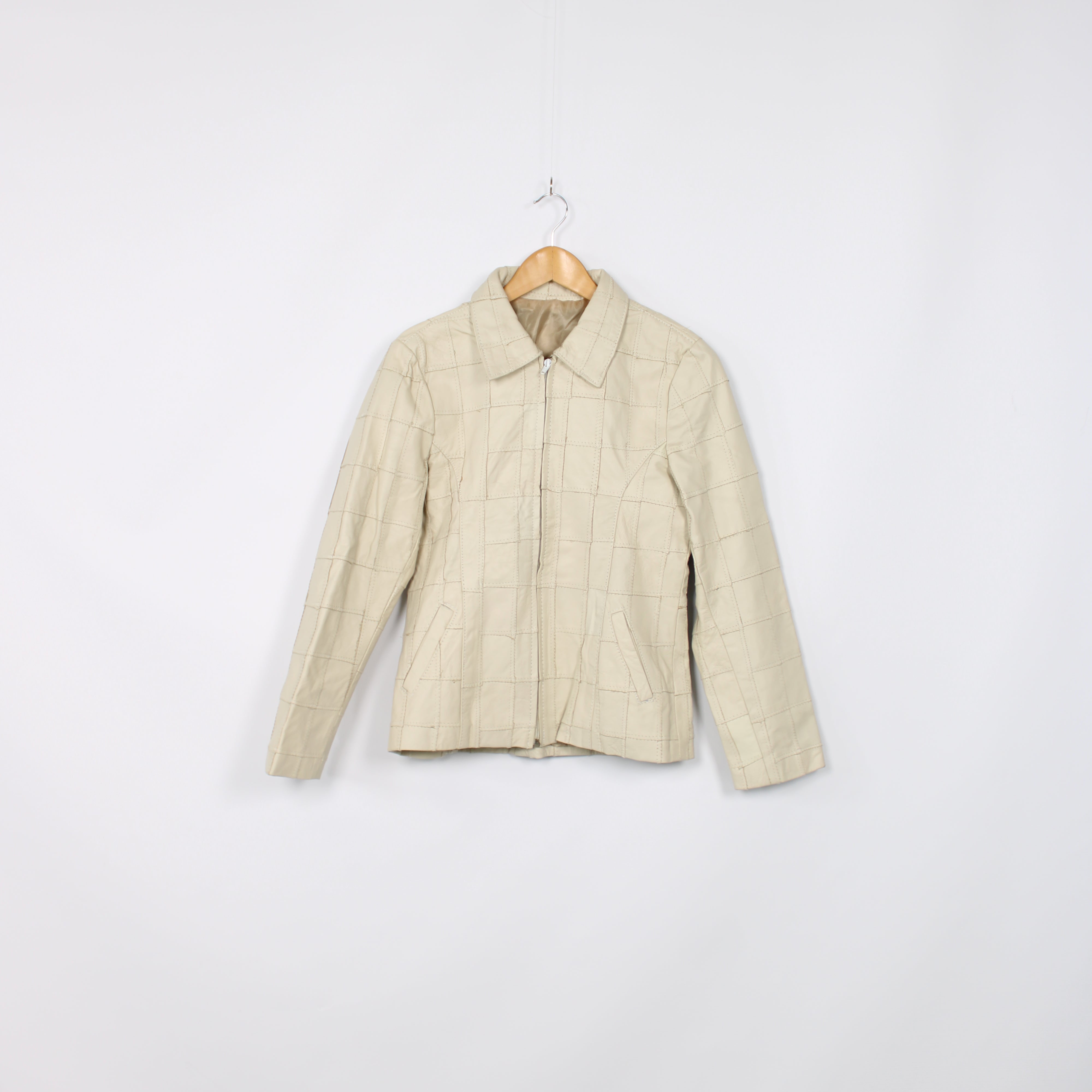 Beige Patchwork Leather Jacket