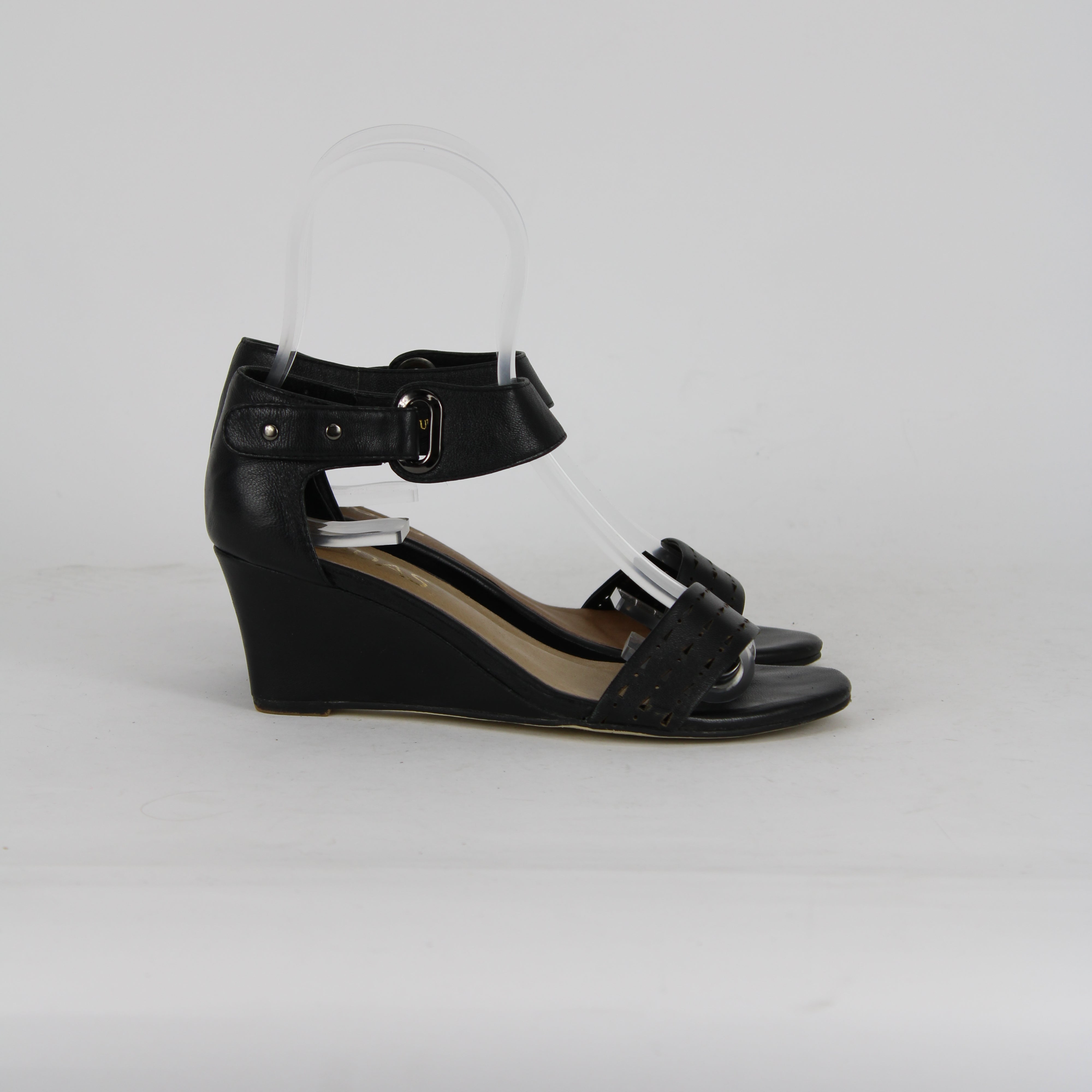 Midas Black Leather Wedge Heels