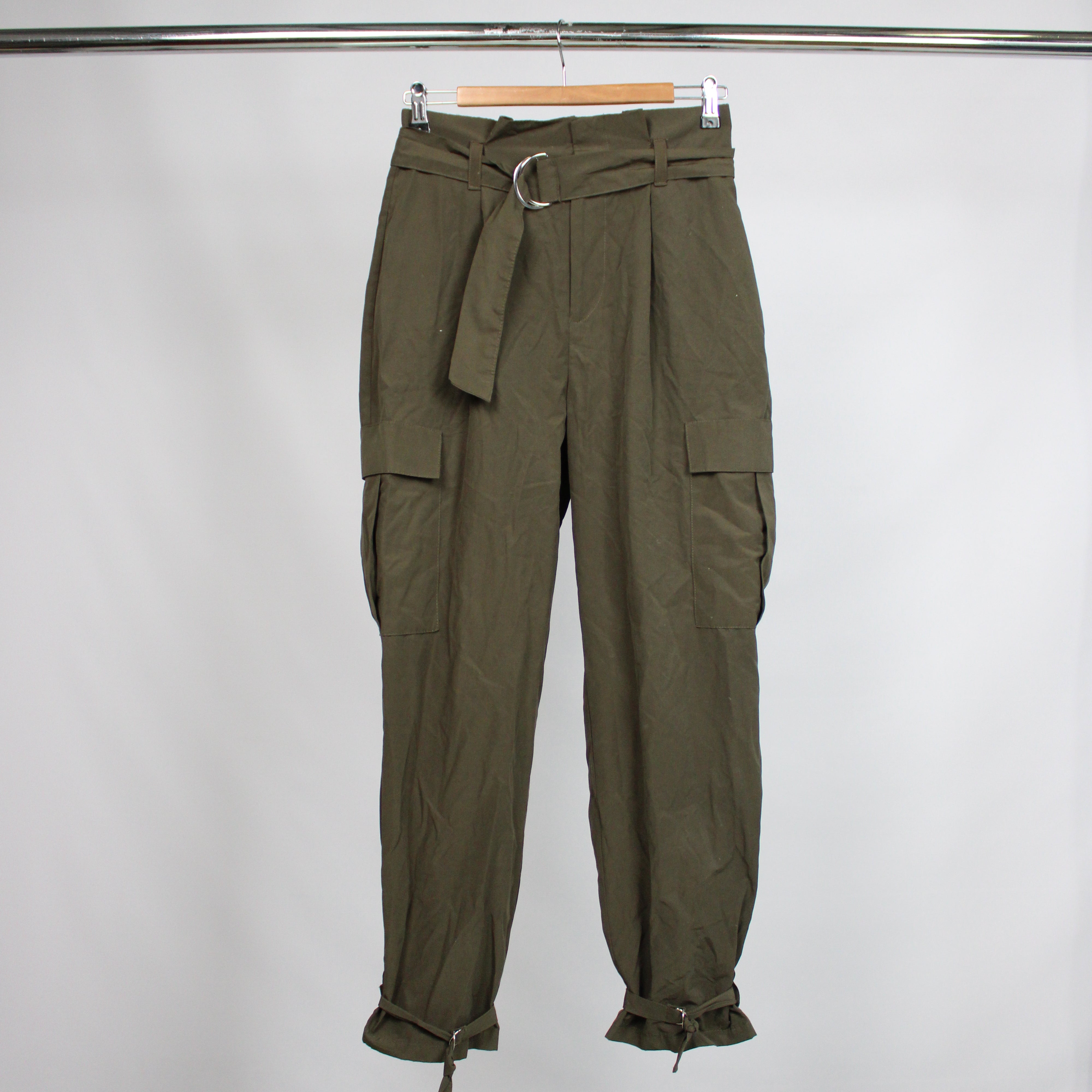 Zara Khaki Belted Cargo Pants