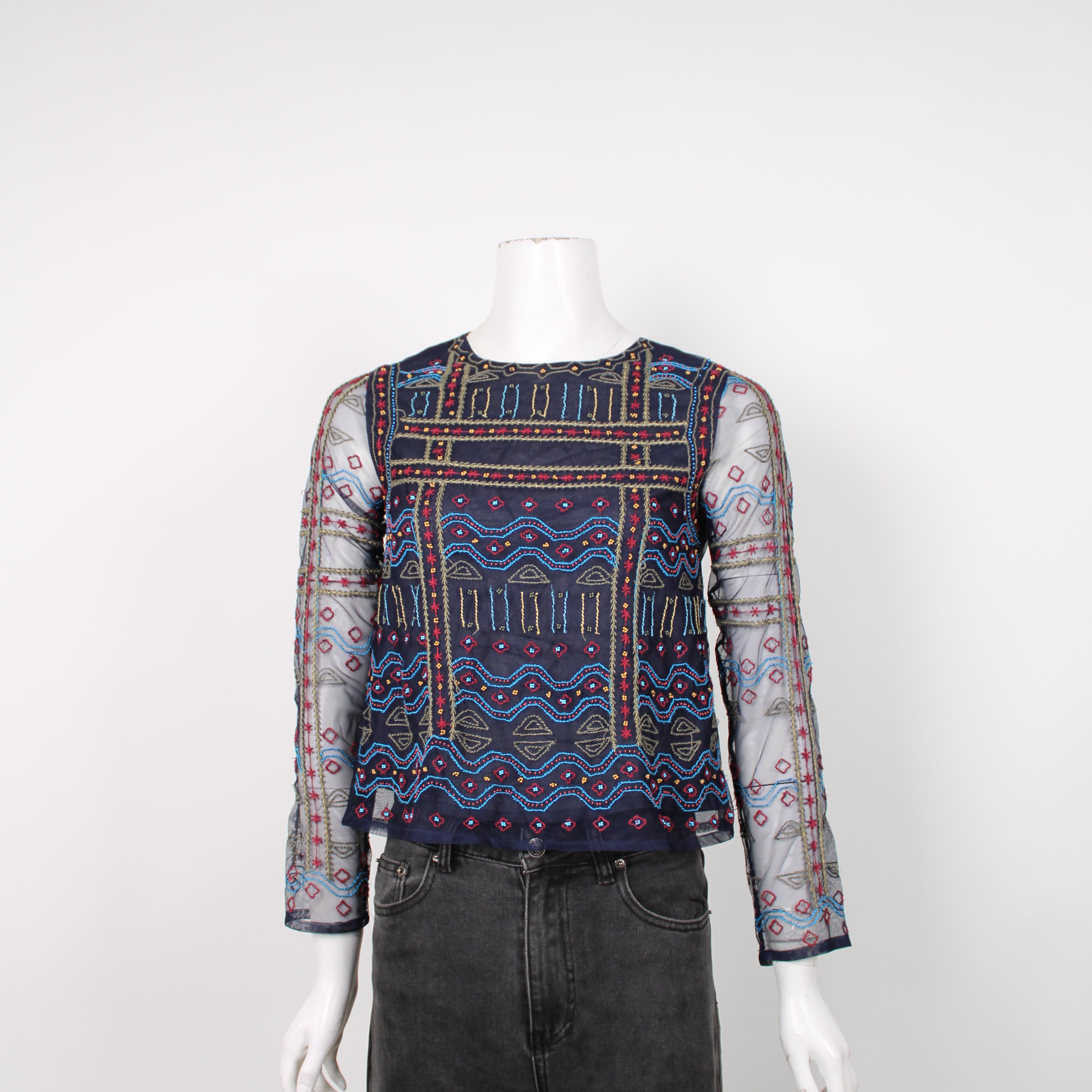 Zara Navy Embroidered Blouse